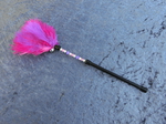 Der Teleskopwedel hat eine Gesamtlänge von ca. 34 cm und kann auf eine Gesamtlänge von ca. 41 cm ausgezogen werden. Durch das Verlängern bzw. Verkürzen des mit Perlen besetzten Stahldrahtes können sie die Beweglichkeit des Teleskopwedels beeinflussen. Das Produkt besteht aus sehr robusten, langlebigen Straußenfedern, einem mit Perlen bestückten Stahldraht, einem kleinen Glöckchen, welches ihren Liebling zusätzlich zu Spielen animierten wird, sowie einem sehr strapazierfähigen Kunststoffgriff.
